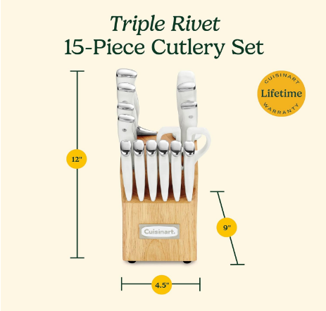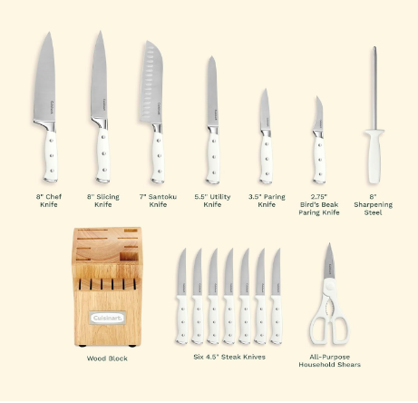 Choose the 15-Piece High Carbon Stainless Steel Forged Knife Set with White Triple Rivet Handles and Storage Block.