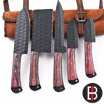 5-Piece Knife Set with Leather Carry Bag – Red Wooden Handle