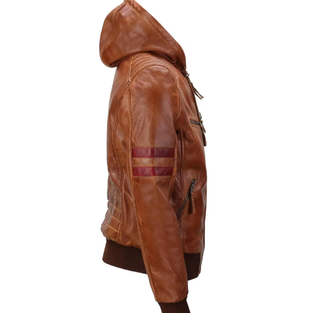 For added convenience, this hooded leather coat includes smooth zip closures, secure inner and outer pockets, and reinforced seams for extended use. Every stitch reflects premium craftsmanship, ensuring the jacket stays strong season after season. The hood provides extra warmth and style, making it ideal for motorcycle riding, city commuting, or everyday casual wear.