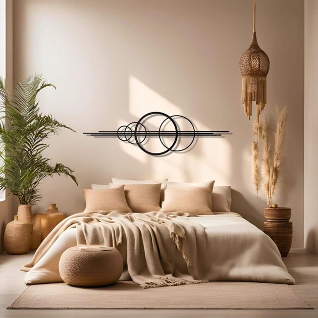 The three-dimensional design sets this piece apart. Layered circles create depth and subtle shadows. As light changes throughout the day, the artwork appears dynamic and engaging. Therefore, the wall never feels flat or static. This 3D effect adds sophistication without overwhelming the room.