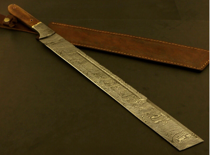 Custom Hand Forged Damascus Steel Full Tang Machete Bowie Hunting Sword + Sheath