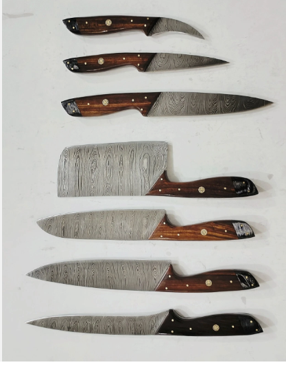 Custom Made Damascus Steel Professional Kitchen 7Pcs Knife set
