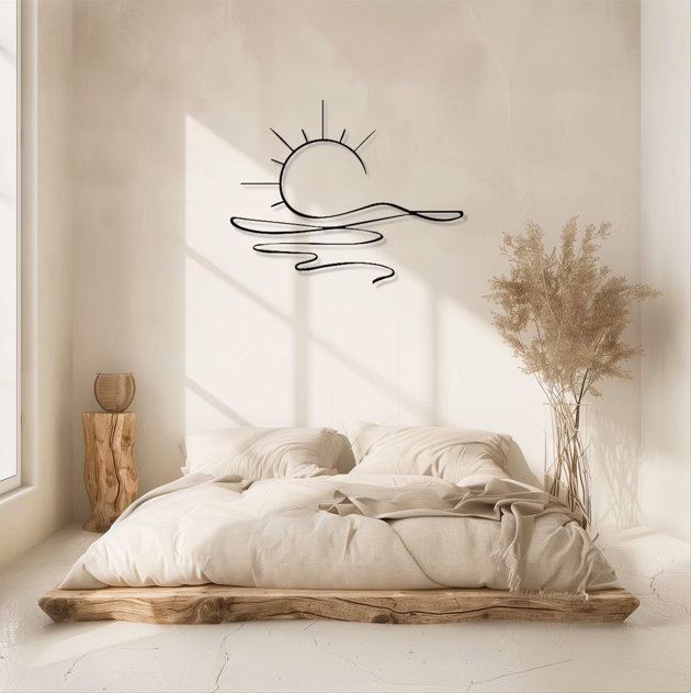 The sunrise design symbolizes new beginnings, positivity, and warmth. Therefore, it fits beautifully in living rooms, bedrooms, entryways, or meditation spaces. The minimalist style blends easily with modern, boho, farmhouse, and Scandinavian interiors.