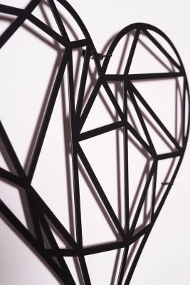 The centerpiece of this artwork is a heart shape constructed from geometric steel lines. Straight edges and symmetrical angles give it a contemporary twist on a classic symbol. As a result, the design feels fresh, artistic, and visually intriguing.