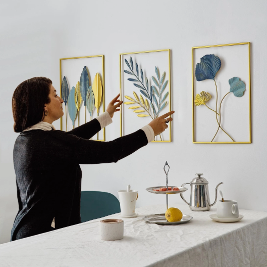 This gold leaf wall art set suits living rooms, bedrooms, dining rooms, offices, and even bathrooms. It also works beautifully in apartments, homes, or boutique-style interiors. Additionally, it makes a thoughtful gift for housewarmings, weddings, or special occasions.