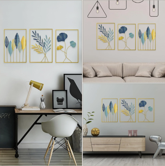 This set of three metal leaf wall decorations gives you flexible styling options. Display them in a row, cluster them together, or space them across a larger wall. Furthermore, they work well above sofas, beds, dining areas, hallways, or entryways. As a result, you can create a custom look that fits your space perfectly.