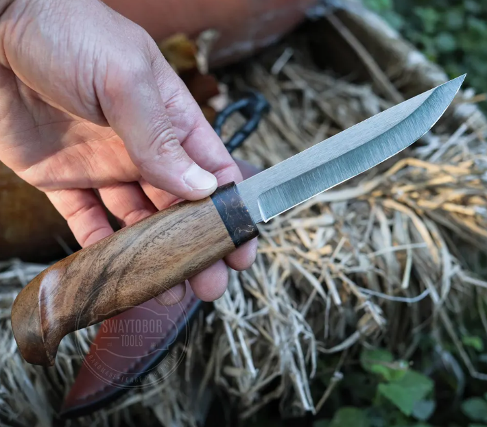 Handcrafted Finnish Puukko Knife – Walnut Wood Handle – Nordic Bushcraft Knife – Custom Outdoor Survival Tool