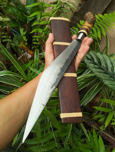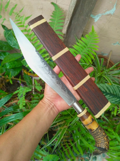 Handmade 11.9” Machete Hunting Knife Forged Bearing Steel Bamboo Rosewood Handle