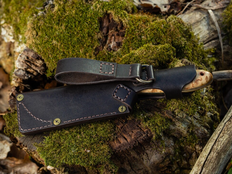 In addition, this knife comes with a hand-stitched genuine leather case. The sheath fits snugly, keeping your blade protected from moisture and scratches. Thanks to the sturdy belt loop, it stays secure and within reach during hikes, hunts, or long treks through the forest. The case not only enhances safety but also complements the knife’s rustic appeal.