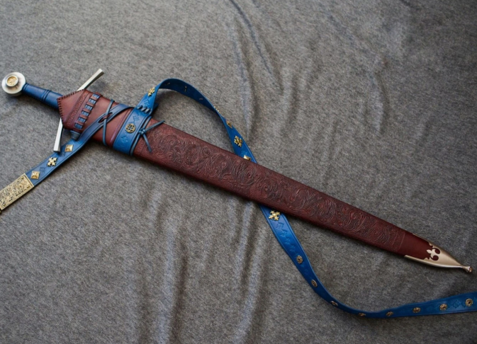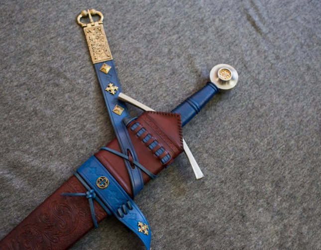 Handmade Carbon Steel Sword Sovereign of Albion Style with Leather with Scabbard
