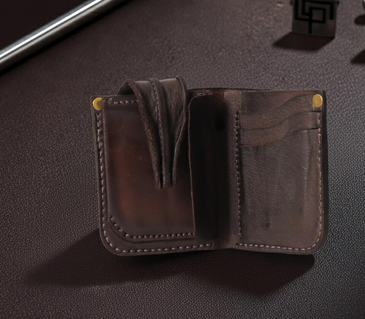 This wallet is made from full grain leather, known for its strength and natural beauty. Every stitch is hand-sewn, giving the wallet a rugged yet refined look. The leather softens over time, developing a unique patina that adds character and charm. No two wallets are exactly alike, making each piece truly one-of-a-kind.