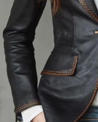 Designed with a tailored fit, this leather blazer accentuates your shape while offering effortless comfort. The structured cut creates a sleek profile that flatters the waist and shoulders. Consequently, it works beautifully over dresses, blouses, or casual tees alike.