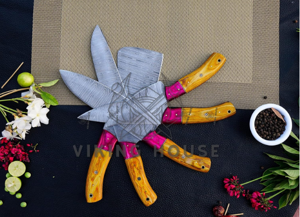 Each knife is crafted from high-quality Damascus steel. Therefore, edges remain razor-sharp longer. Rust and corrosion are minimized. In addition, each knife maintains strength and resilience. As a result, even dense ingredients are sliced smoothly and safely.