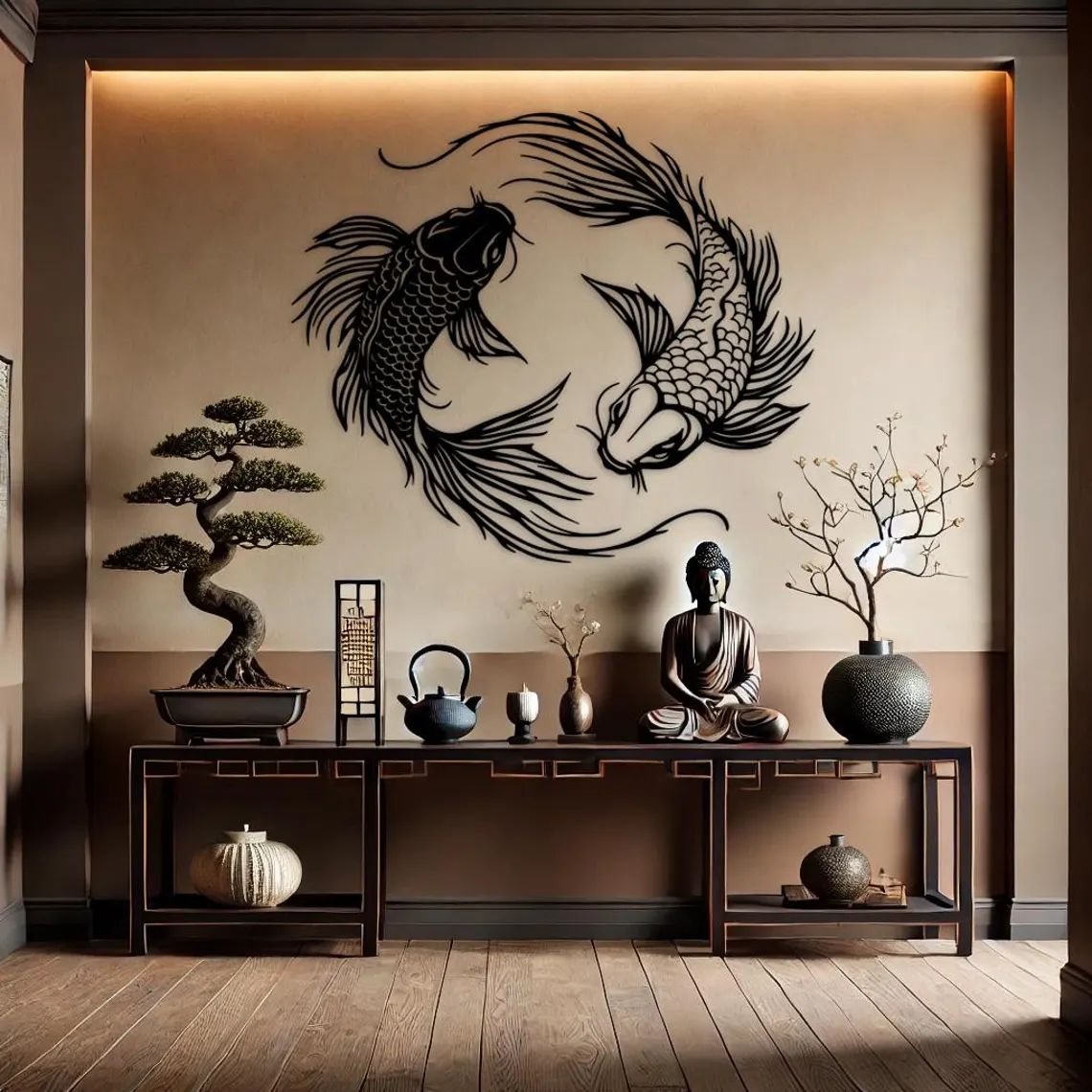 • Koi Fish metal wall art with Japanese Zen inspiration