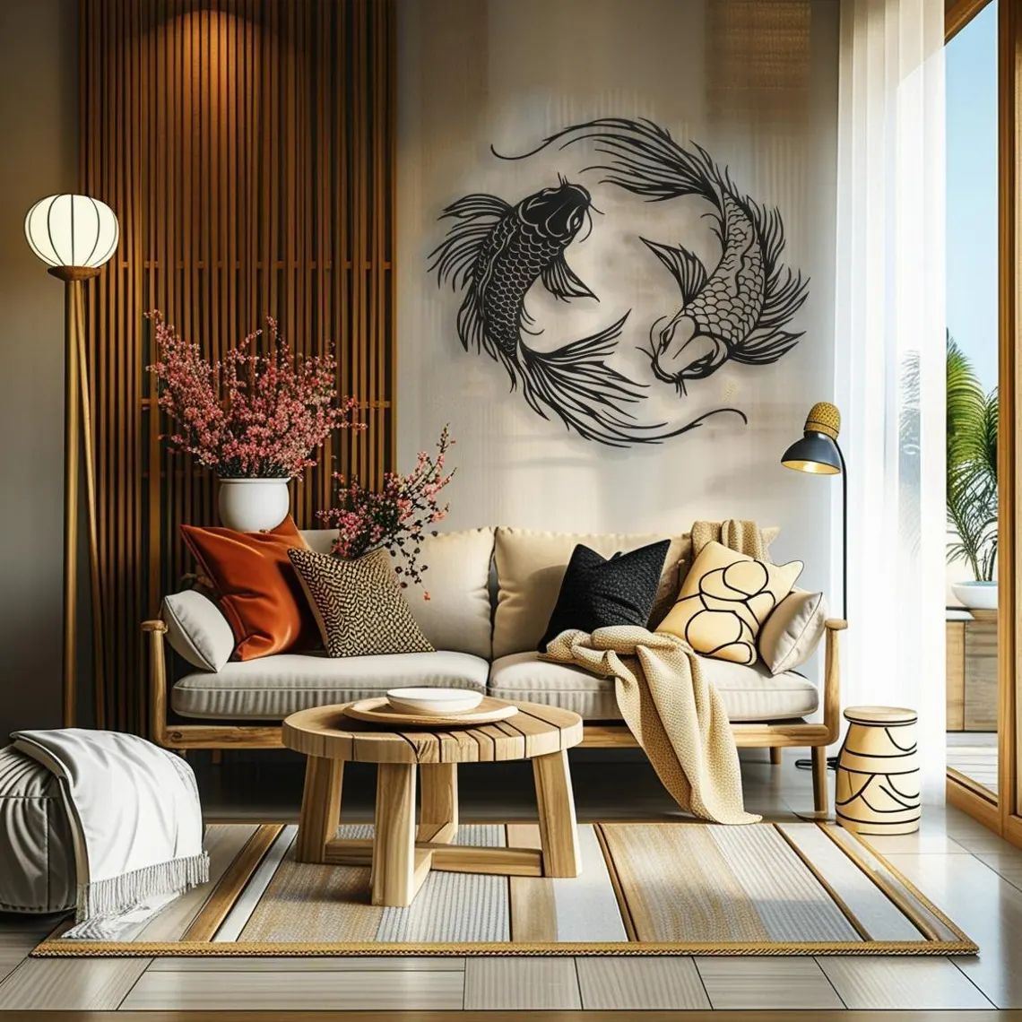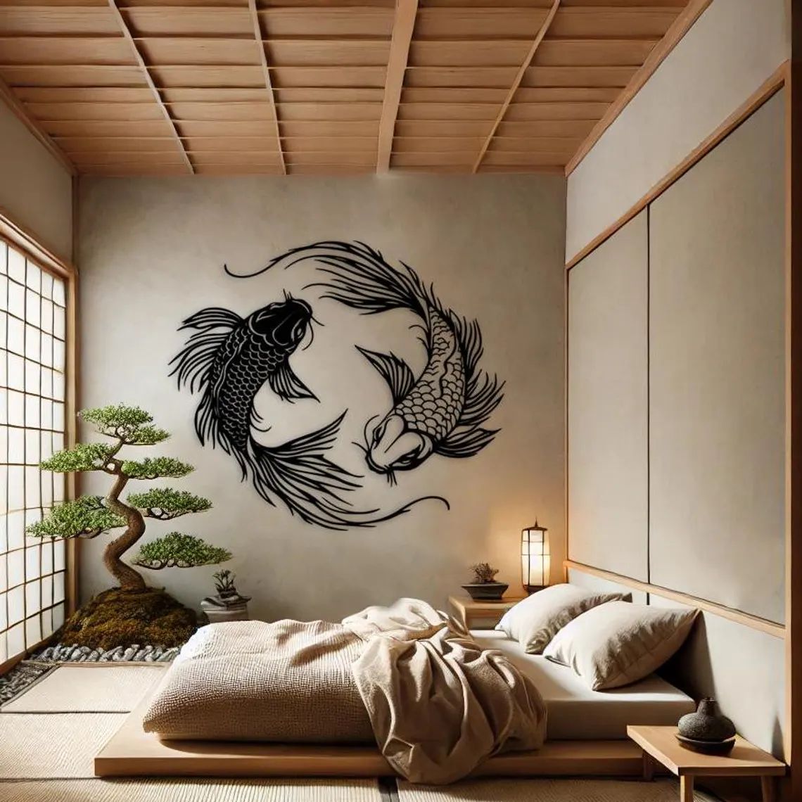 Koi Fish Metal Wall Art, Japanese Zen Decor, Modern Living Room Wall Decor,