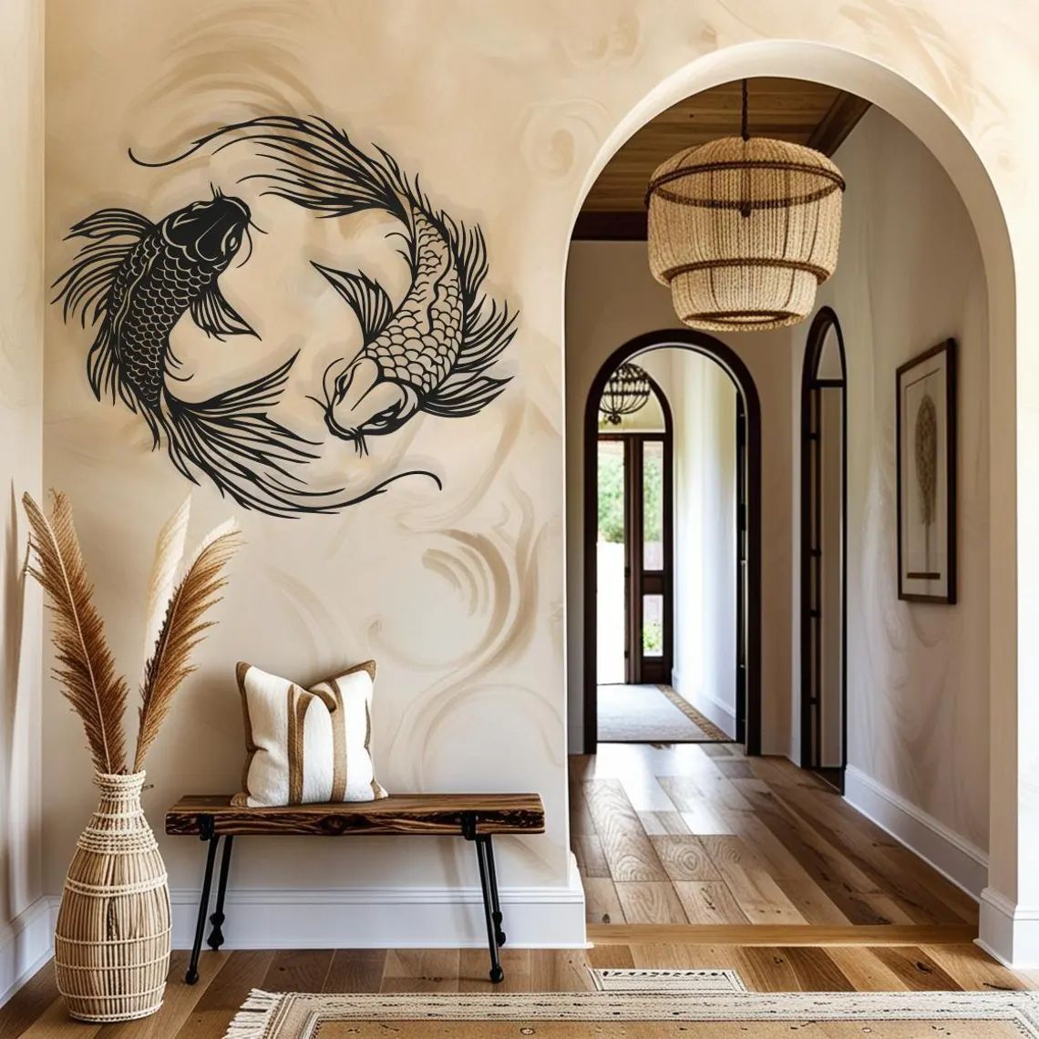 The flowing koi fish design adds movement and depth to your walls. Its modern aesthetic balances well with neutral tones, vibrant colors, or layered textures. This piece works in living rooms, bedrooms, offices, or even wellness spaces. By combining artistry, symbolism, and craftsmanship, it transforms ordinary walls into visually captivating focal points.