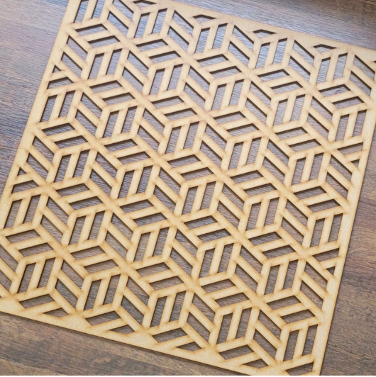 The laser-cut geometric pattern creates a dynamic visual effect that adds depth and sophistication to interiors. It casts subtle shadows and highlights when placed near light sources, enhancing the overall ambiance. Additionally, the neutral MDF material allows customization with paint or finishes, giving you full control over your décor.