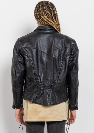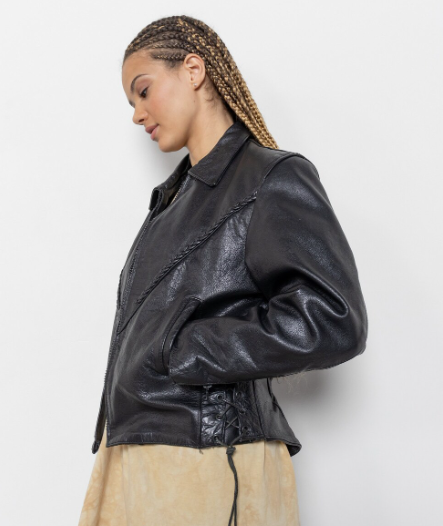 LEATHER MOTORCYCLE JACKET – Vintage Braided Corset Ties Coat
