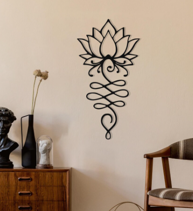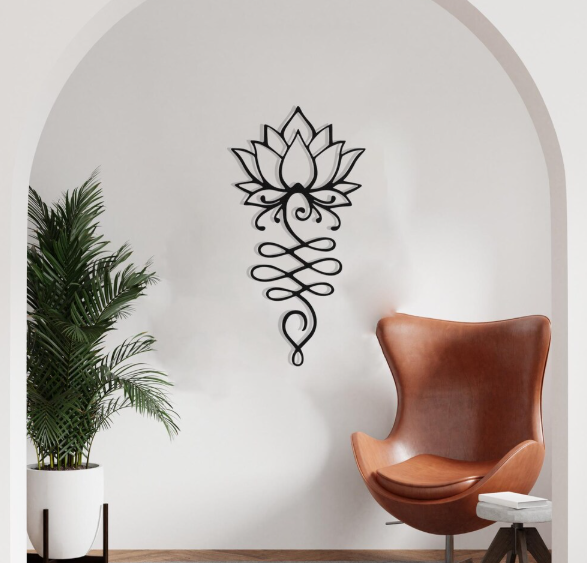 The lotus flower represents purity, growth, and spiritual enlightenment. Its delicate design adds serenity and mindfulness to your space. Displaying this symbol in your home or studio encourages calmness, focus, and positivity every day.