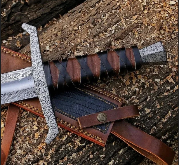Marvelous Handmade Damascus Steel King Arthur/Medieval Sword With Leather Sheath