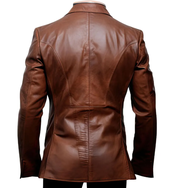 Men’s Brown Leather Blazer – Tailored Fit, Genuine Cowhide, Classic Style
