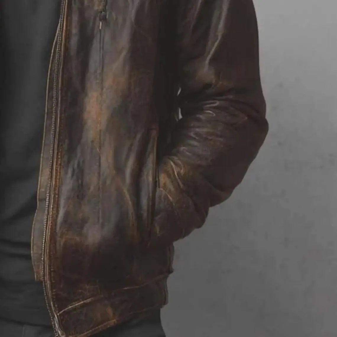 This men’s vintage distressed brown leather jacket blends rugged style with long-lasting durability. Once worn, it becomes a signature piece in your wardrobe.