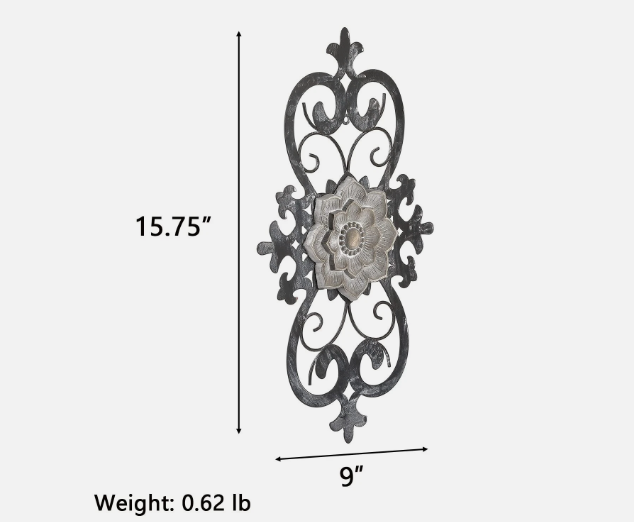 In conclusion, this 15.75” x 9” Metal Scroll Floral Wall Decor combines elegance, durability, and versatility. Its intricate design and sturdy construction make it a standout piece in any room. For those looking to elevate their walls with timeless floral artistry, this wall art is the perfect addition.