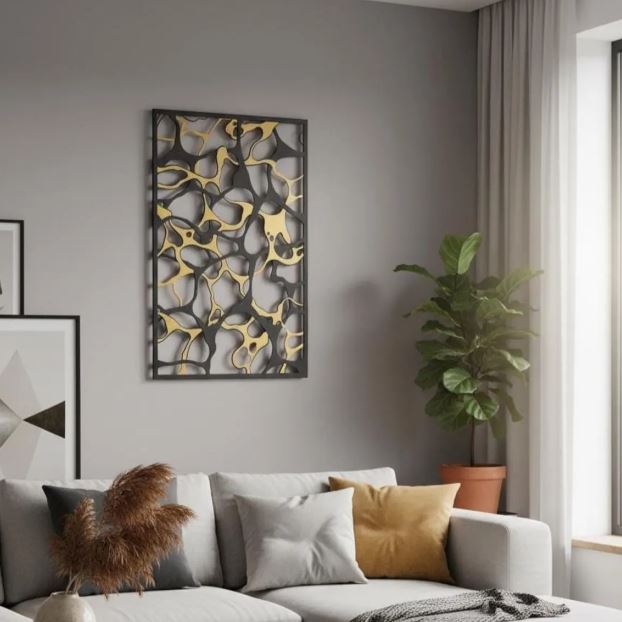 This abstract metal wall art adapts easily to different spaces. In living rooms, it becomes a sophisticated focal point. In bedrooms, it adds calm and harmony. It also works beautifully in offices, hallways, and studios. Because of its balanced design, it suits both small accents and large feature walls.