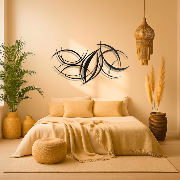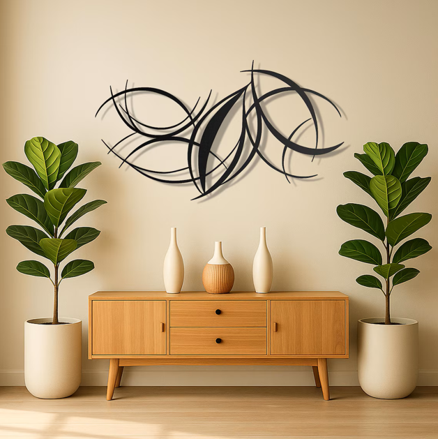 Abstract design allows creative interpretation. This curved metal wall art expresses balance, motion, and harmony without strict form. Because of its open design, it invites conversation and artistic appreciation. At the same time, it maintains a clean and minimal presence. Therefore, it works well in both bold and understated interiors.