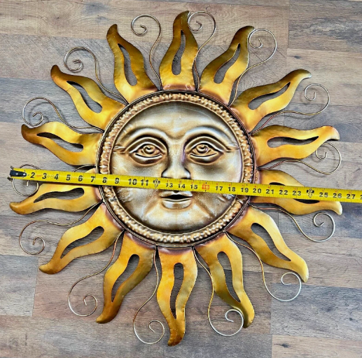This Sun With Face metal wall decor adds a cheerful and artistic touch to any wall. Measuring 26 inches in diameter, it makes a bold statement while instantly bringing warmth and personality to your home, patio, or garden.