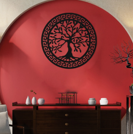 This modern wall art features a beautifully detailed Tree of Life enclosed in a balanced circular form. The flowing branches and grounded roots create a sense of movement and stability. Moreover, the clean lines give the design a contemporary feel. Therefore, it works perfectly in both modern and classic interiors.